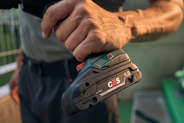 Kas ir CAS? CAS nozīmē "Cordless Alliance System" – dažādu zīmolu akumulatoru sistēma. Ir apvienojušies jau vairāk nekā 45 zīmoli, lai nodrošinātu iekārtu, akumulatoru un lādētāju 100 % saderību. Rezultāts: visas mašīnas darbojas ar vienu CAS akumulatoru. Sīkāka informācija atrodama vietnē: https://www.cordless-alliance-system.com/